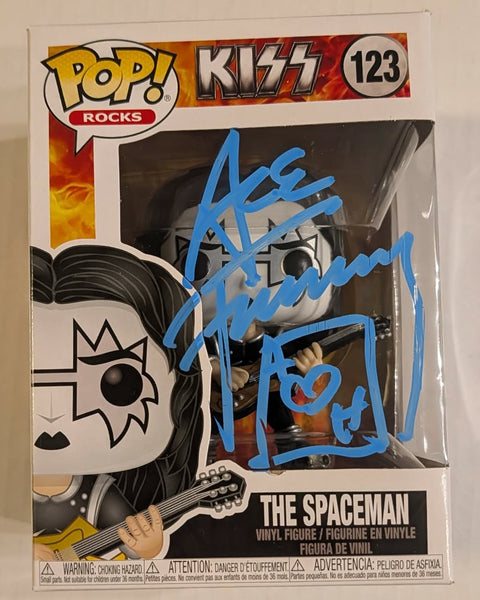 123 FUNKO POP signed by ACE FREHLEY in BLUE marker!! Comes with a protective case