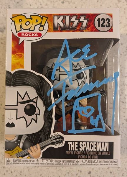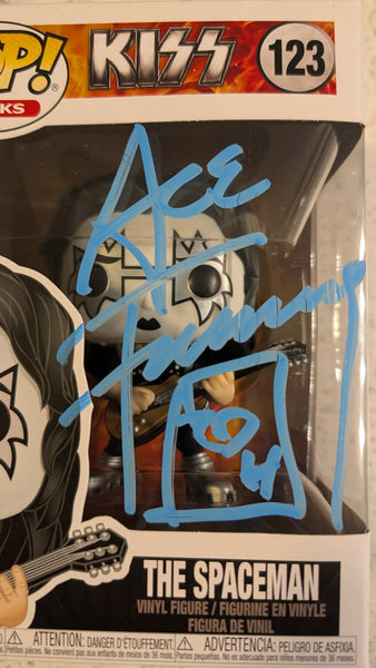 123 FUNKO POP  signed by ACE FREHLEY in BLUE marker!! Comes with a protective case
